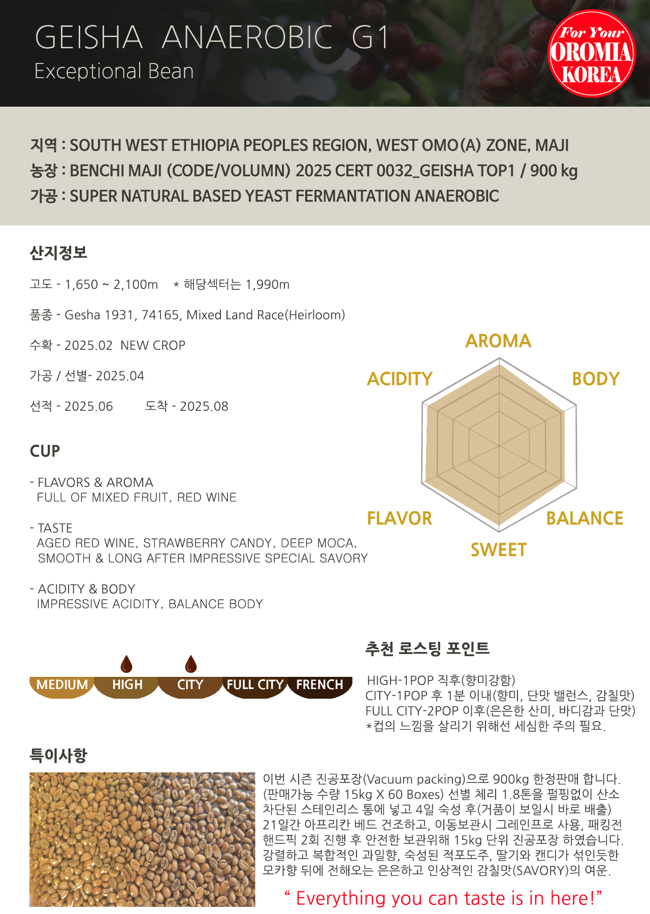 [에티오피아] 게이샤 무산소 G1 벤치마지_딸기와인 캔디 (Micro Lot.) 8/21 NEW 1kg_49,500원 주문하기 본문 이전글 다음글 목록 댓글목록 댓글목록 등록된 댓글이 없습니다.