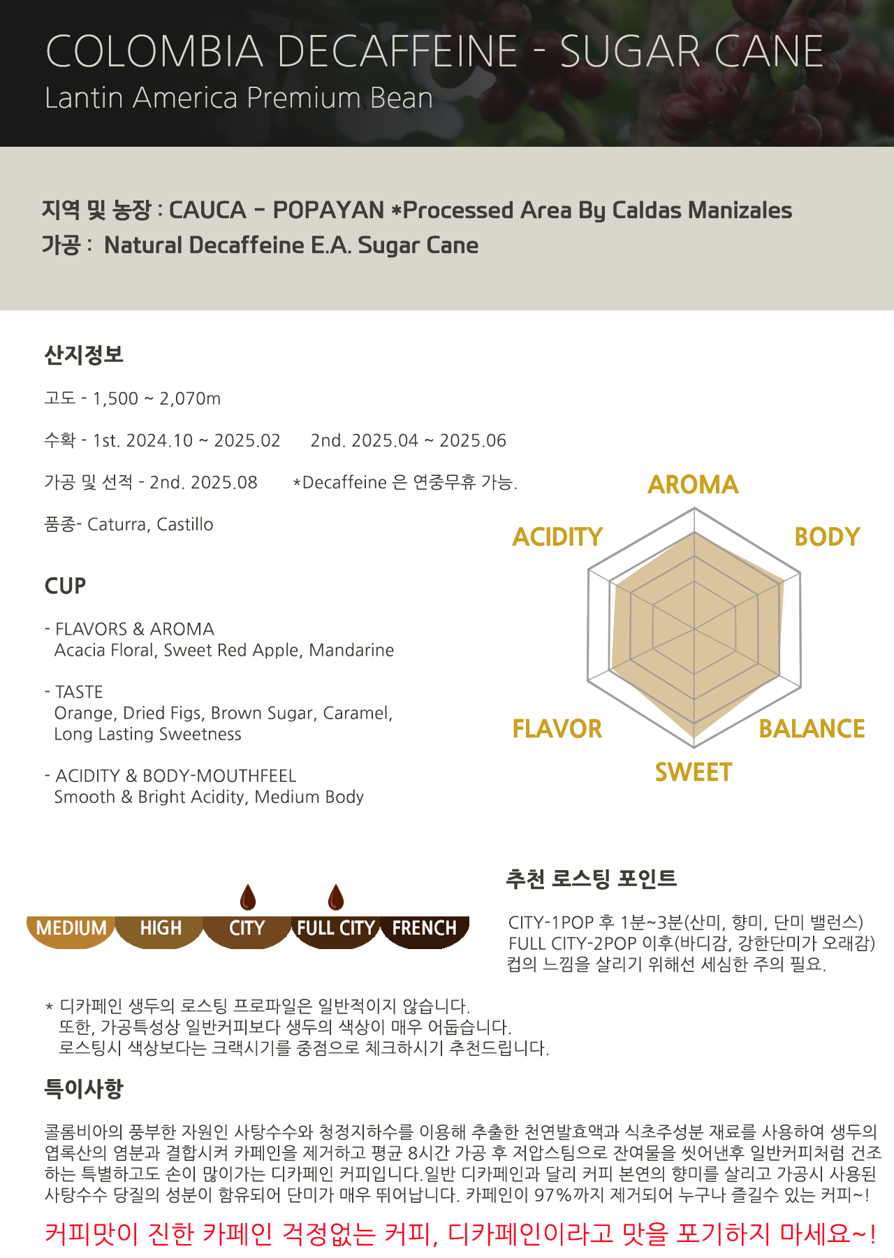 [콜롬비아] 디카페인 슈가케인 카우카 포페이얀 (E.A Decaff Sugar Cane) *11/12 NEW 1kg_ 23,800원 Score. 83.25 주문하기 본문 이전글 다음글 목록 댓글목록 댓글목록 등록된 댓글이 없습니다.